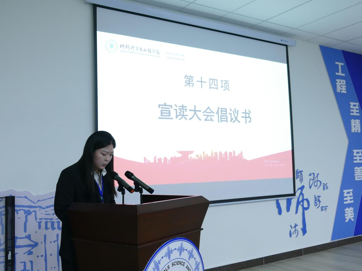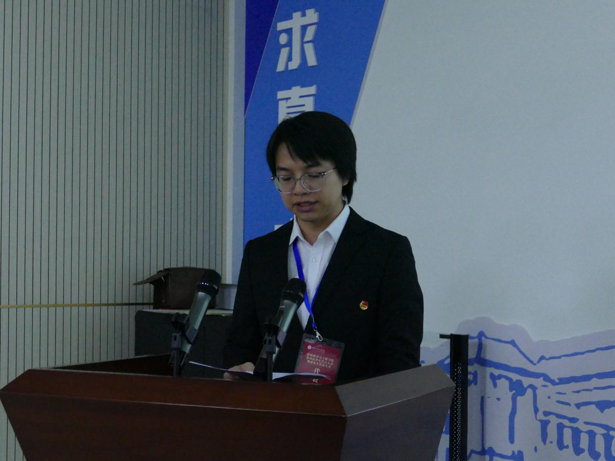 员工代表张景怡同学宣了大会倡议书,倡议与会代表作为新时代青年,应志存高远,将个人理想与祖国前途、民族命运紧密相连,坚守奋斗,彰显爱国情怀与梦想力量。同时勇于创新,将开拓创新作为常态,敢闯敢进,在吃苦中培养进取精神,努力成为民族复兴的时代新人,共同书写新时代的青春篇章。