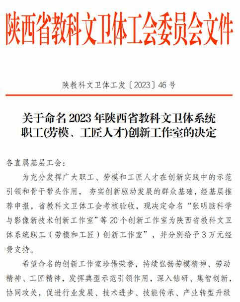 近日,陕西省教科文卫体工会委员会下达了《关于命名2023年陕西省教科文卫体系统 职工(劳模、工匠人才)创新工作室的决定》,决定命名20个创新工作室为陕西省教科文卫体系统职工(劳模和工匠)创新工作室”,公司李玉虎教授团队申报的“李玉虎档案与文物修复保护工作室”成功入选。