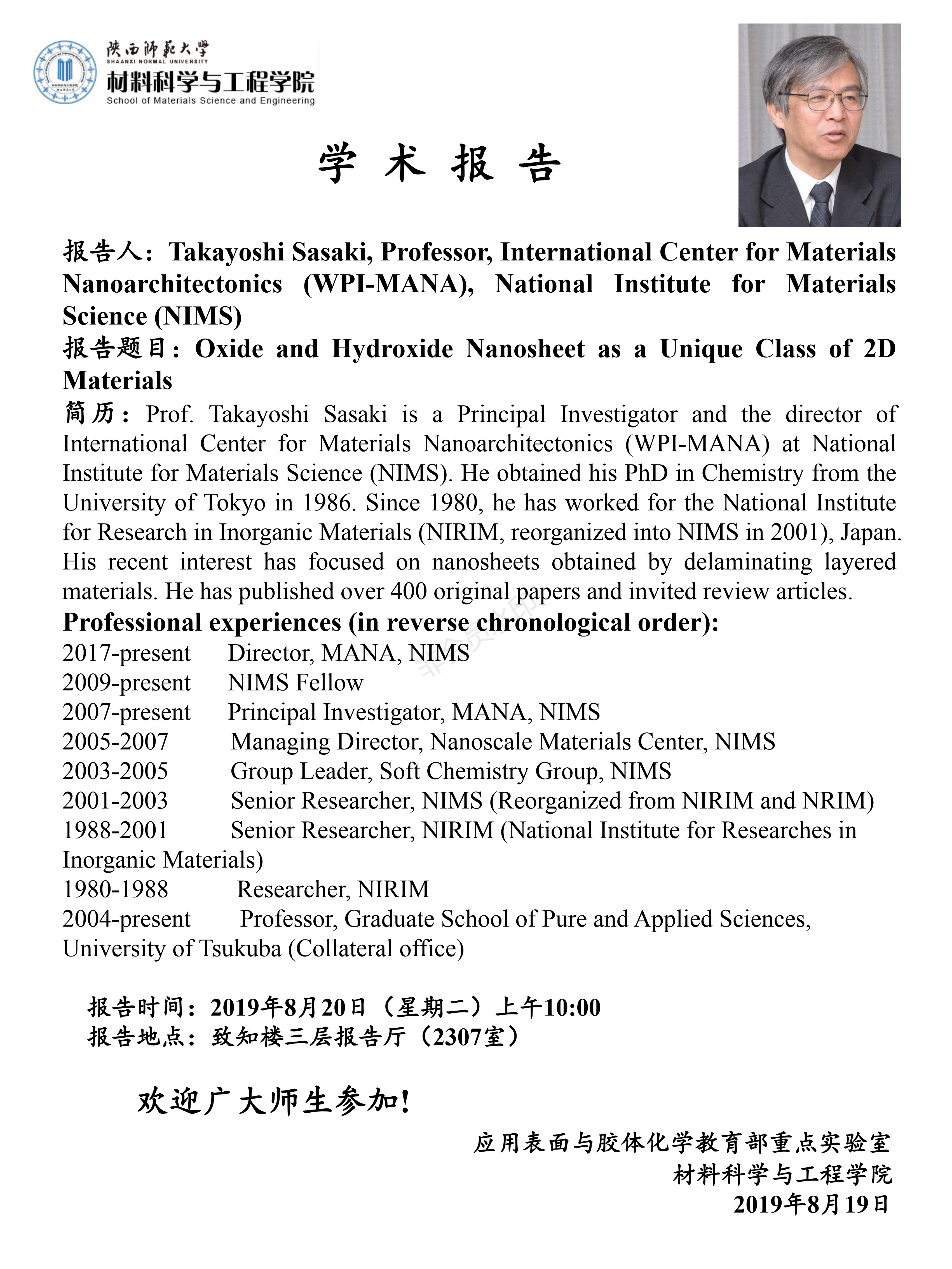 【学术报告】8月20日学术报告预告