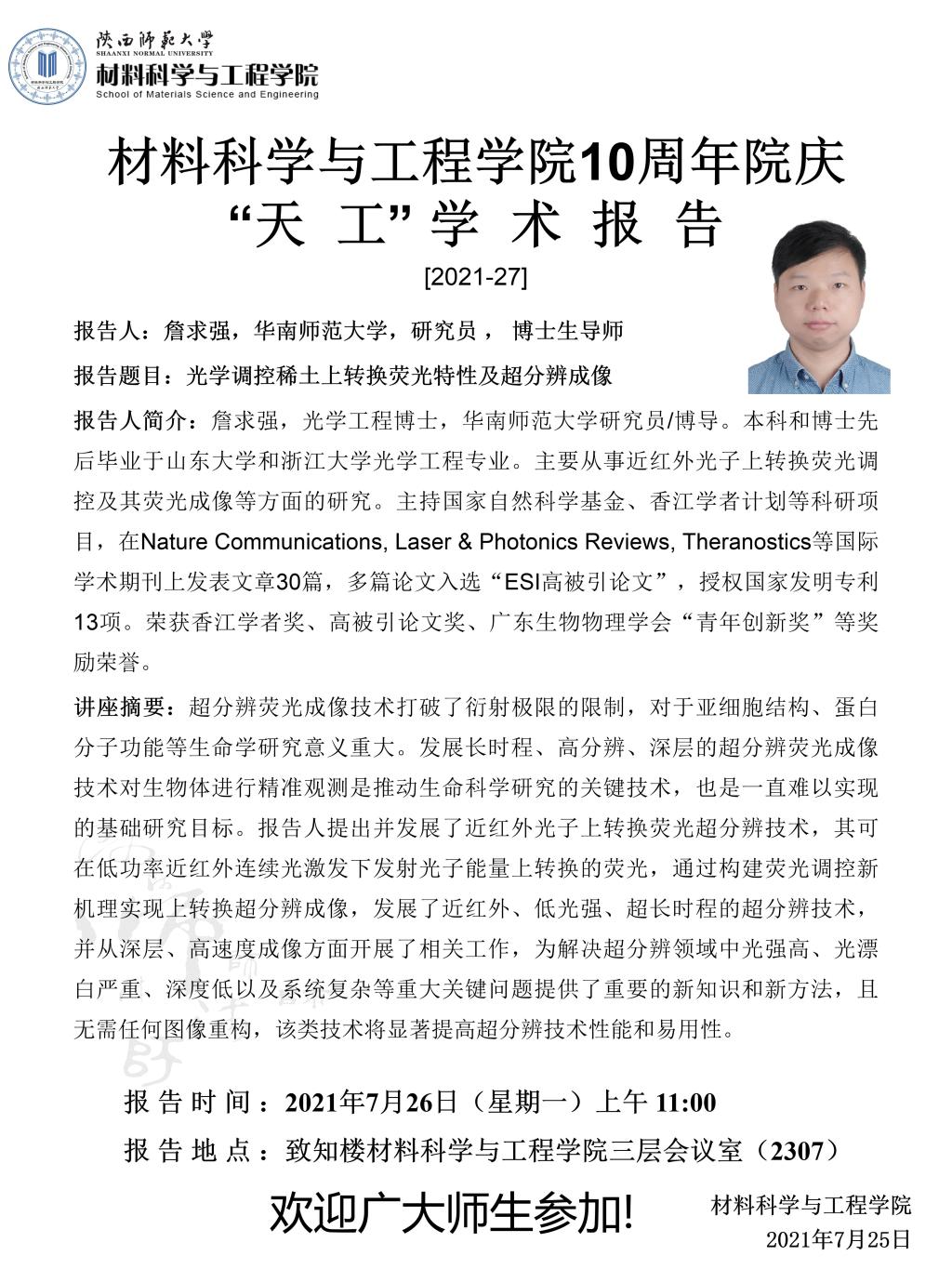 【学术报告】7月26日学术报告预告